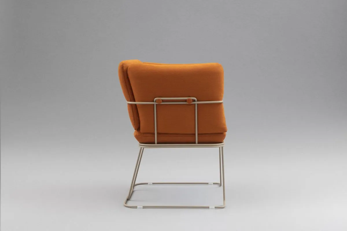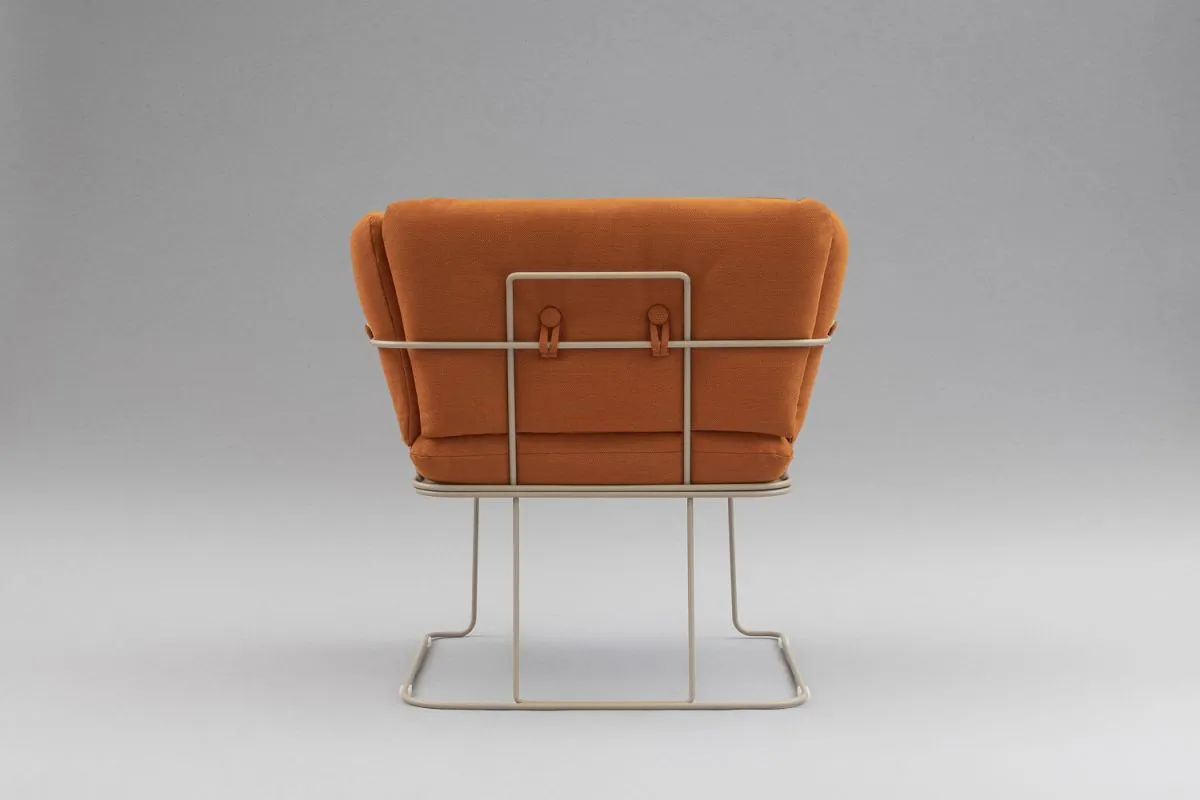 Merano combines the clean Scandinavian lines and details of Ilkka Suppanen with the ergonomics and the colorful touch of Raffaella Mangiarotti. Due to its special cushions, the Merano chair and sofa in the B-LINE catalog suitable for indoors or outdoor use, in both public and private areas. The shape of the frame is visually drawn of five continuous lines. These lines are realized in galvanized and painted steel rods, a material that the Company is already familiar with. Special attention has been paid to the easy transportation and storage of this furniture. The weight-bearing frame is divided into two parts which, when separated, decrease its volume and significantly reduce packaging size. Merano for B-LINE, 2017