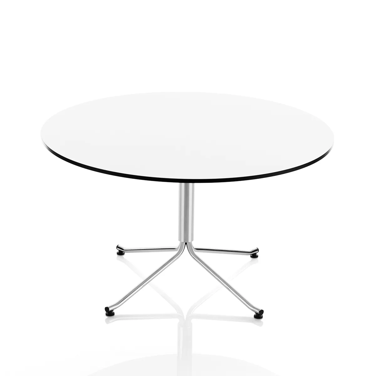 The Millibar Lounge Table top is white compact laminate. The steel frame is available either powder coated or chromed.