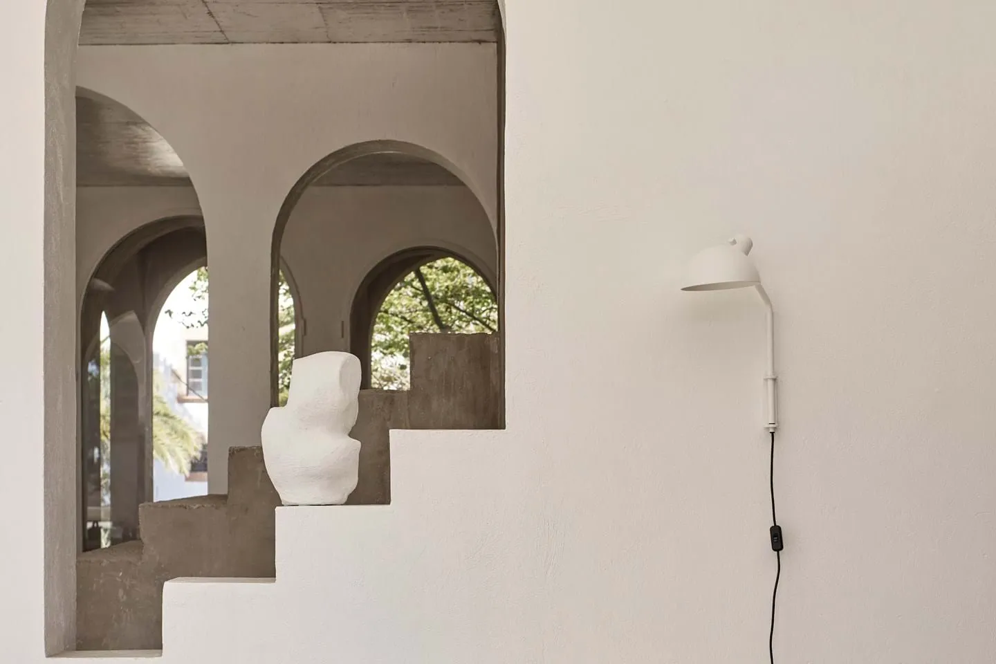 The idea behind the thin cylinder is to give the lamp both functional and visual stability and balance. In the wall, table, and floor lamp, the cylinder goes all the way through the socket to emphasize the stability of the lamps. In the pendant, the long, thin cylinder ensures that the lamp will fall back into place quickly if you accidentally push it. By having the cylinder and the hemisphere in all four lamps, Mads Odgård creates a sense of calm through repetition. This means that the four lamps can all be part of the same environment, and that several lamps of the same model can work together and bring harmony.