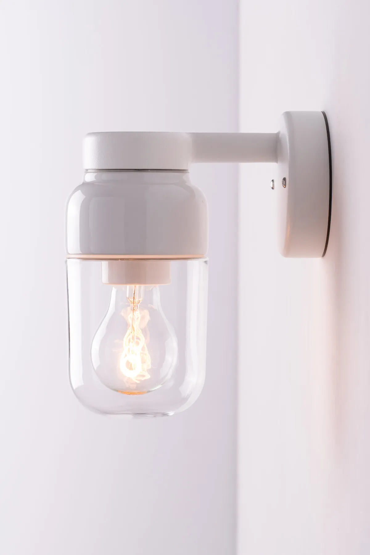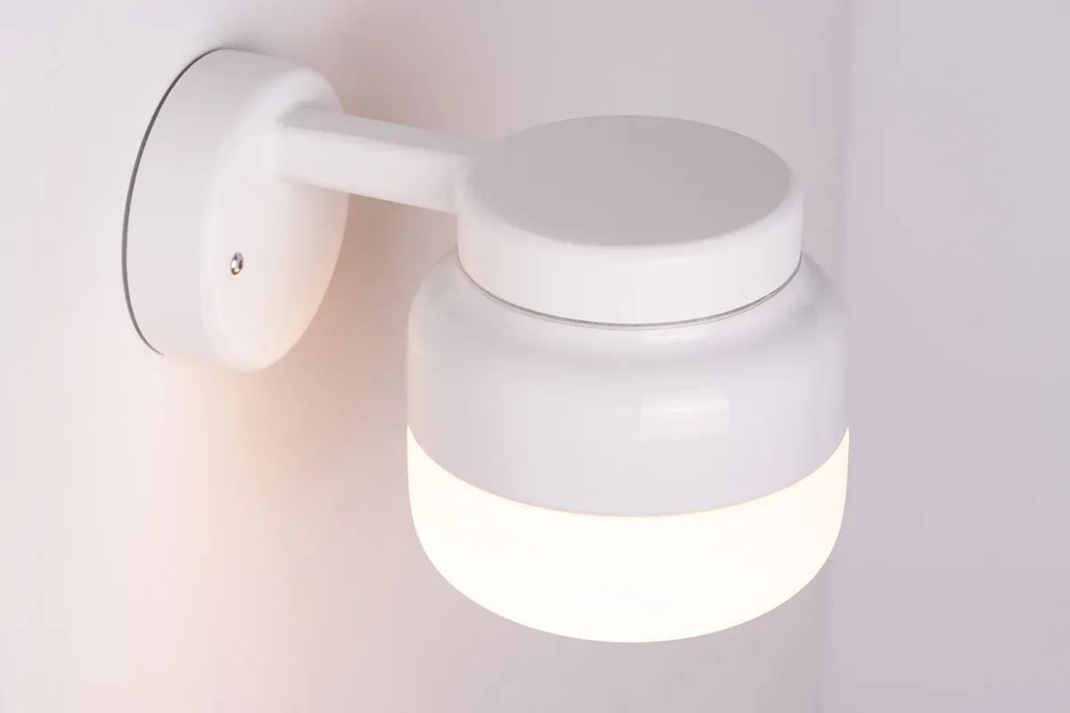 Ifö Electric has a great tradition of manufacturing splash safe porcelain luminaires and sconces, to be installed directly on to facades, walls or ceilings. Ohm Wall with its emphasized vertical expression mounted on arm, adds a new motif and lighting archetype to the company range. The luminaire is elegantly drop-mounted to an extended metal arm, highlighting the porcelain, and bringing out the very best of the high gloss glazed durable material. The new metal component is sand casted in recycled aluminum, casted in Sweden.