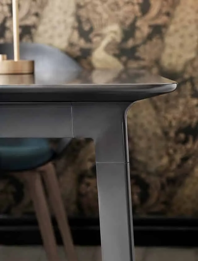 “The architect Le Corbusier developed his own scale of proportions that he called the Modulor system. This was based on the dimensions and proportions of the human body and the aim was to create a tool for good design and architecture. Our Modulor table is likewise based on a few simple key components – a leg, a joint and a rail. Plus a tabletop, of course. The dimensions of the profiles and tabletops can be simply adapted to virtually any desired format or proportion. Like a tool for good design and architecture. The strength of the table – literally and metaphorically – is in the details. The extruded leg that meets the moulded joint that meets the extruded rail that meets the figure-milled edge of the tabletop… Behind the precision of these details and the harmonious relationship between their individual forms are more than 1,000 hours of dedicated work from designers and product developers.”