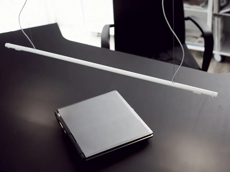 Mondrian is constructed of steel bar and pipe, and moulded parts. To prevent glare, the lamp housing is moulded with a collar around the light source. The translucent ring in moulded acrylic insulates the heat from the outermost section of the lamp head. The ring lights up when the lamp is on, and indicates how to adjust the light. In the table and floor versions, Mondrian’s light can be directed 180 degrees horizontally and 335 degrees vertically. The wall version is fitted with a ball joint that gives smooth and flexible adjustment – regardless of direction. The pendant has two light sources, and can replace the double lamps that typically hang over a long dining table.
