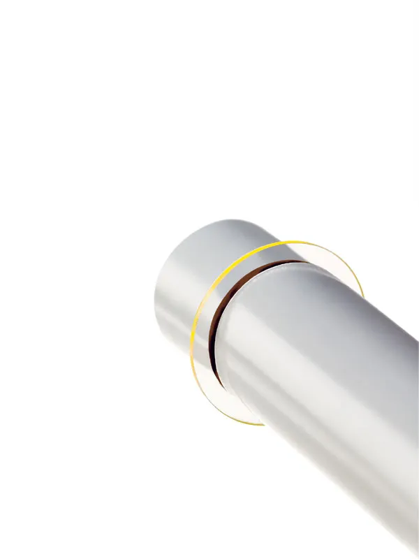 Mondrian is constructed of steel bar and pipe, and moulded parts. To prevent glare, the lamp housing is moulded with a collar around the light source. The translucent ring in moulded acrylic insulates the heat from the outermost section of the lamp head. The ring lights up when the lamp is on, and indicates how to adjust the light. In the table and floor versions, Mondrian’s light can be directed 180 degrees horizontally and 335 degrees vertically. The wall version is fitted with a ball joint that gives smooth and flexible adjustment – regardless of direction. The pendant has two light sources, and can replace the double lamps that typically hang over a long dining table.