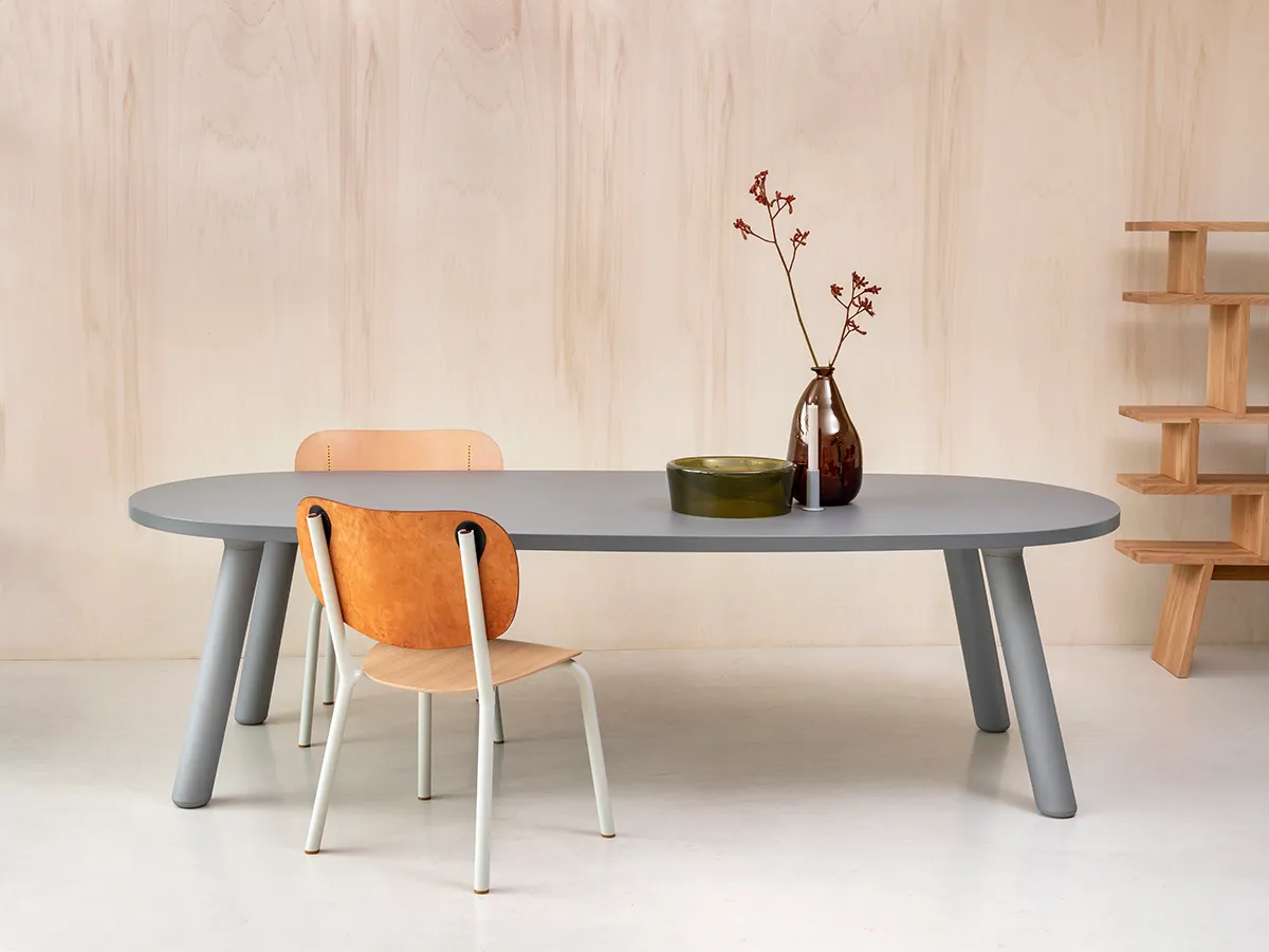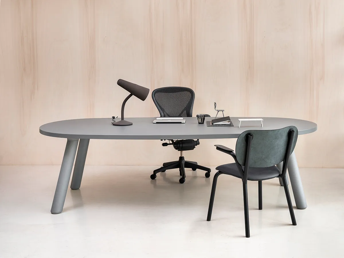 The launch of Monolite: a brand-new table series by Boris Berlin. For the design of the sculptural tables, Boris Berlin took inspiration from monoliths. Large, slab-like sculptures carved from a single rock. Similarly pure in form, the Monolite has a self-bearing tabletop – no supporting frame necessary. Matte coating in a single color reinforces the monolithic character. Choose an oval, round, rectangle, or triangle top in different colors. With such variety, there is a Monolite for every conference space, office, and dining room.
