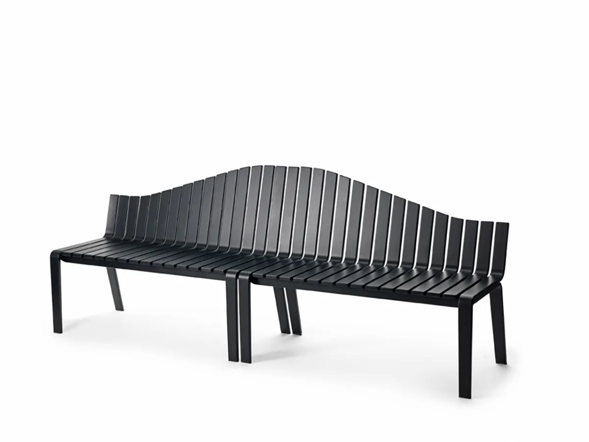 The bench can be used alone but is perhaps most attractive when a number of them create a wave-like movement through the space.”
