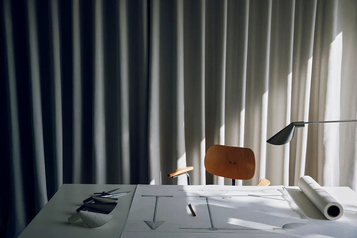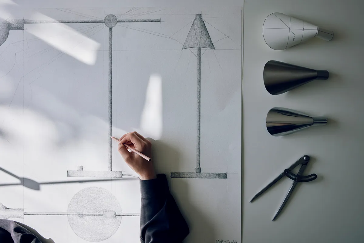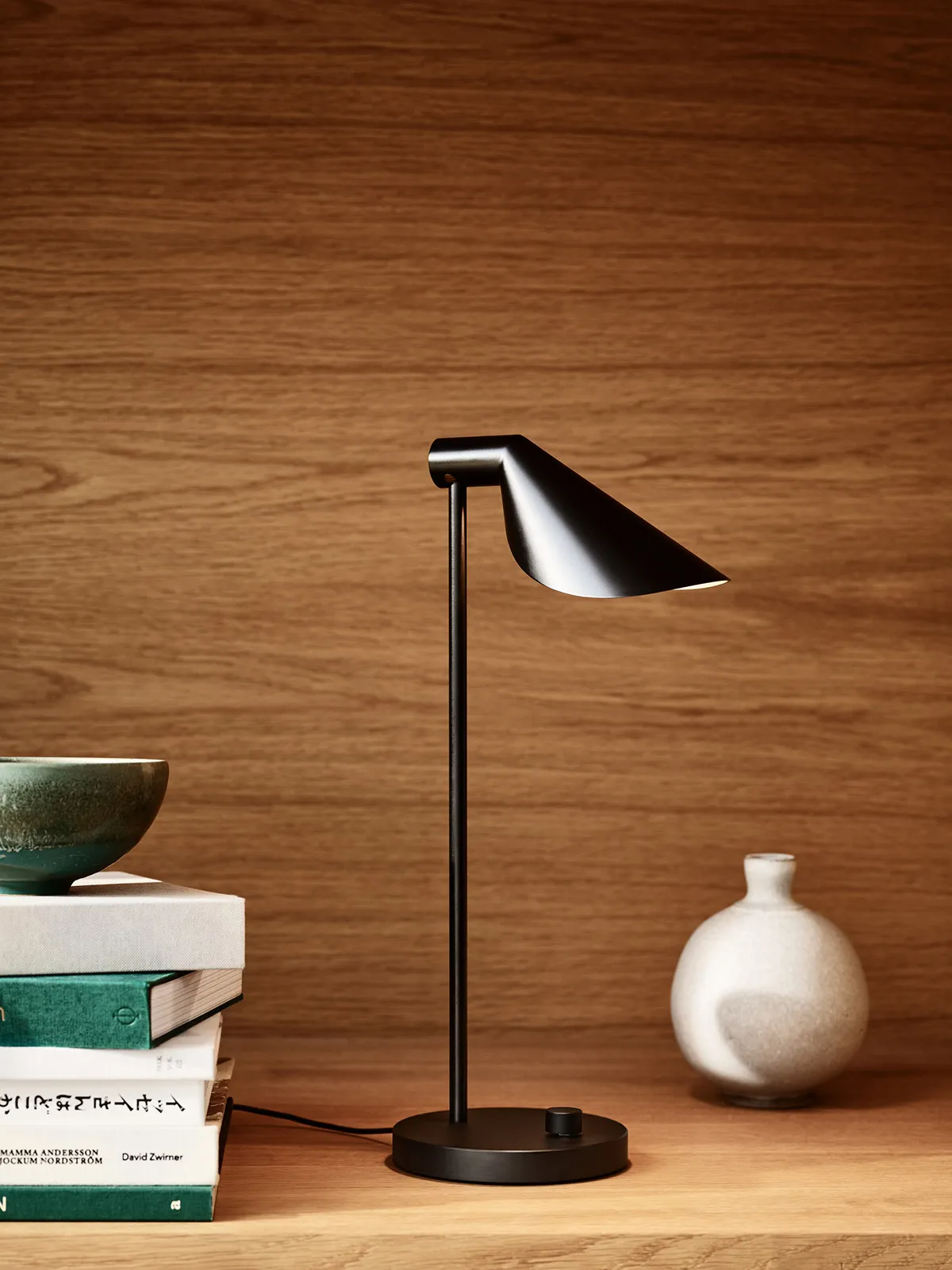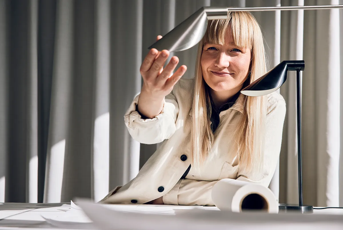 “The starting point was the need for a desk lamp in my studio. I wanted a lamp head which, in all its simplicity, would emit optimal, glare-free task light on my desk while being minimal in size. The design is simple and functional and juxtaposes the stringency of the arm with the softness of the shade. That represents harmony to me, which is part of the series’ DNA.” Schelde adds.