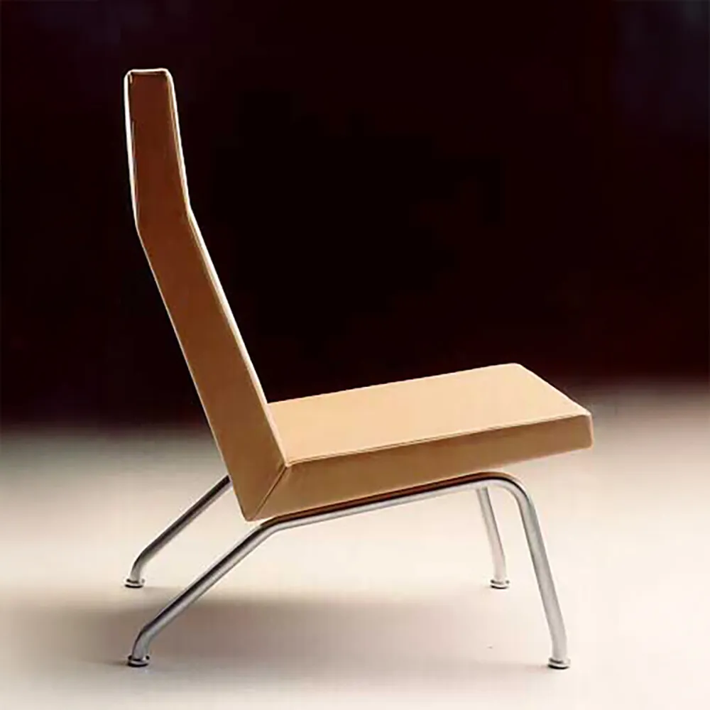 Multiplicity is an easy chair for public areas as well as private homes, and can be used separately or in multiplicity in bigger areas, e.g. airport lounges etc. Anya Sebton has designed the chair with inspiration from aircraft seats; it has a clean, minimalistic appearance, in combination with high comfort. The airport thought can also be seen in an extension of the name Multiplicity; multiple cities – a product for airports connecting places and people. The most prominent part of the chair is the distinct, high back, which, together with the inclination angle of the chair, gives good support. Multiplicity has a frame of laminated wood with polyurethane foam upholstery, mounted on steel tubing. The easy chair can be upholstered with fabric or leather. Furthermore, this easy chair is linkable, and, as an alternative, it can be provided with a small tablet between the chairs. At a later stage, a separate table will be added to the Multiplicity family. Multiplicity – a product offering multiple variations.