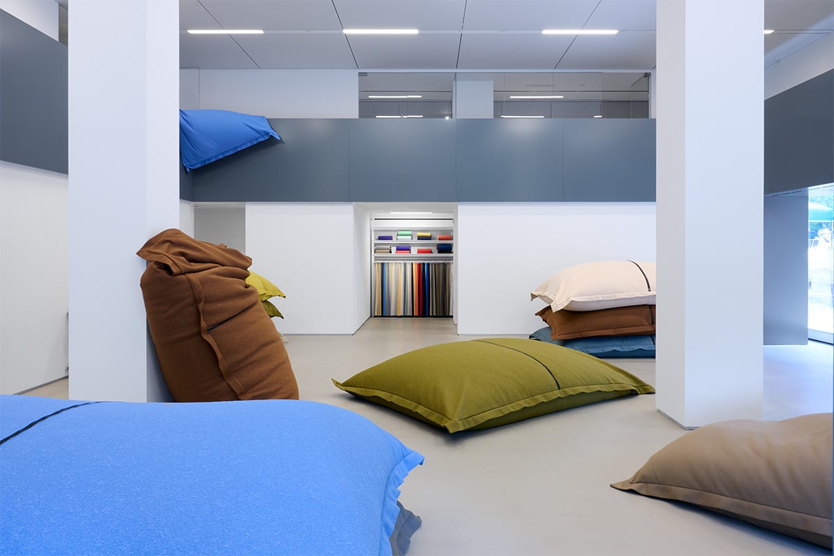 Set against the clean lines of Kvadrat’s New York showroom, the installation pieces brings softness and colour into the space, transforming it with oversized, pillow-like forms. The oversized pillows have a familiar shape, but with an unexpected scale, creating a visual contrast to the square shape of the showroom’s gallery space. Laying across the floor or leaning against walls, the installation is an open-ended invitation for visitors to move, rearrange, and lounge on the pieces. As the days unfold, the installation will shift and evolve, reorganised by the people who interact with it.