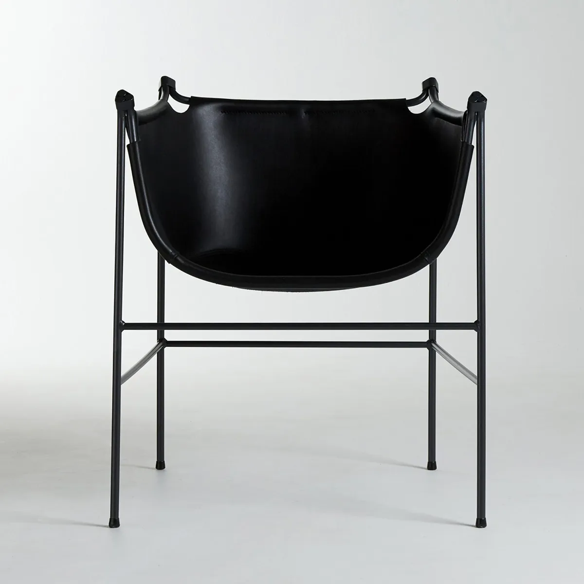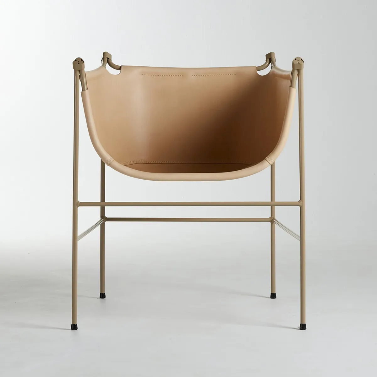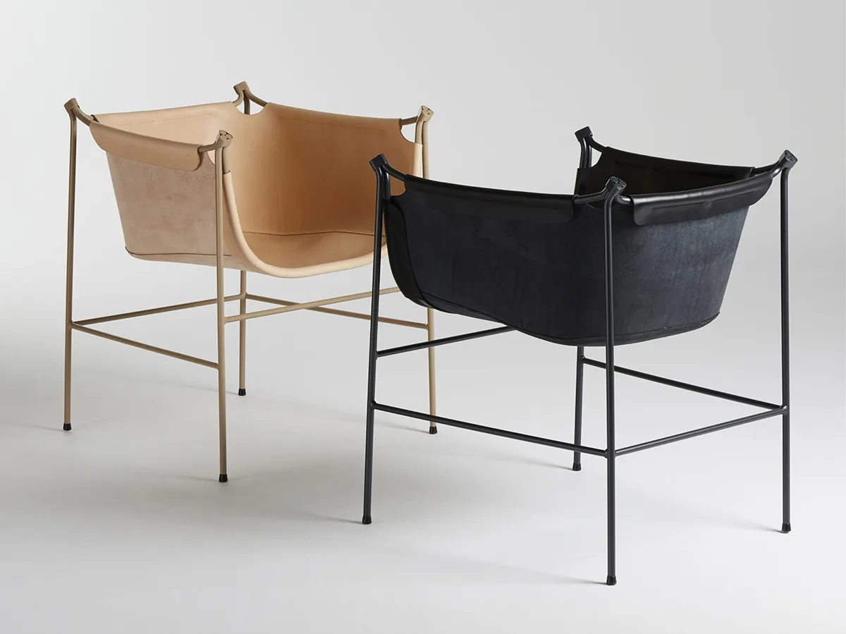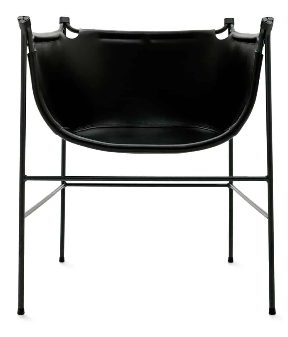 The Näbb chair can be seen as a comfortable armchair, or as a streamlined club chair, depending on how it is used. The seat and backrest are made from a leather sheath suspended from the steel frame, which overlaps at the top and is stitched in place. The simple combination of leather and steel create a striking chair that has an understated character. The leather pieces are sourced from Tärnsjö Garveri and can be complemented by fabric panels attached to the chair’s back and sides.
