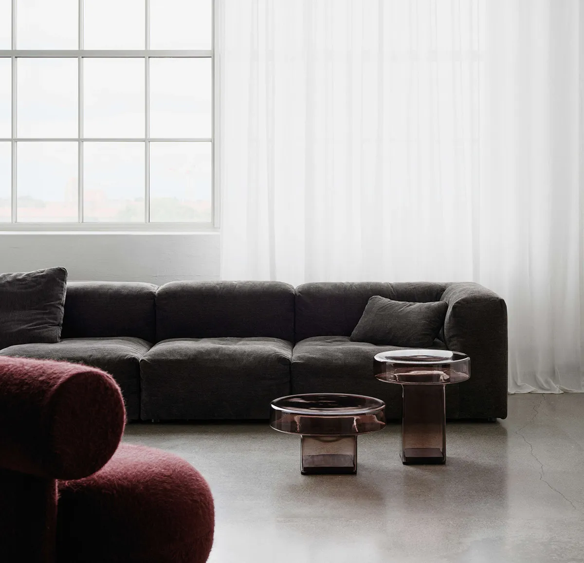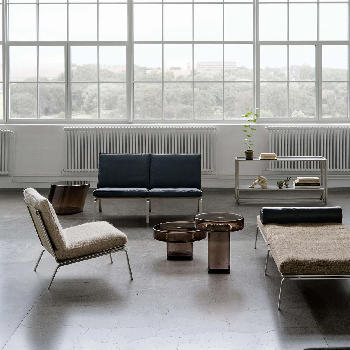 The Naked series is available as a coffee and side table, offered in two warm tones: Smoke, a deep bronze with cool gray nuances, and Amber, a golden hue that adds warmth and glow. The see-through design reveals the entire construction, adding a certain honesty and beauty to the table, that comes from showing it all.
