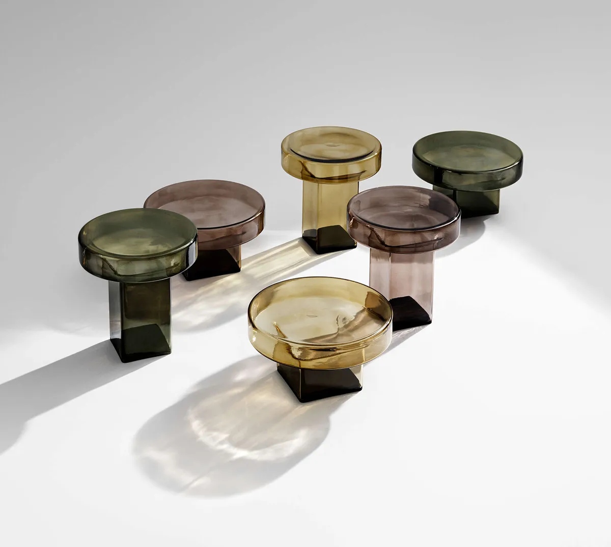 Naked is a new series of mouth-blown glass tables, reduced to its essence: sculptural and honest. No hidden structure, no layered components.