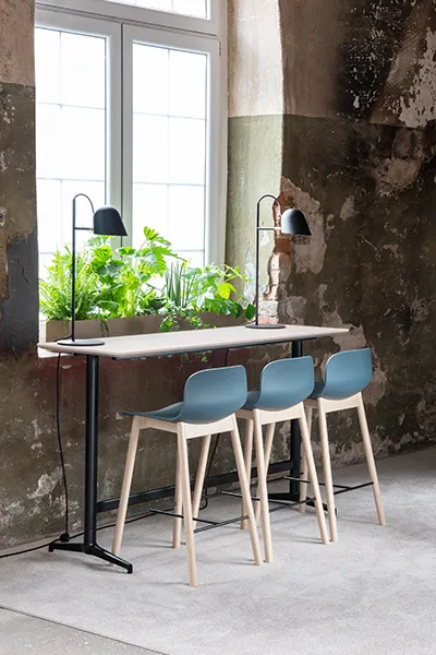 The beautiful lines of Neo Lite and Neo Lite Soft create a comfortable bar stool/chair that looks interesting and active, no matter which direction you approach it from. Behind the clean, self-explanatory design lies a solid piece of workmanship. All of the details have been extensively tested and reviewed. Seat shell in Colours by Materia. Available non-upholstered or with an upholstered seat, as well as fully upholstered. The Neo Lite Soft chair has a beautiful quilted pattern that has been specially designed for the product. The Neo Lite range’s frame is made of solid FSC®-labelled wood, available in either white pigmented or black stained ash. This autumn’s new feature is that the frame is now also available in walnut.