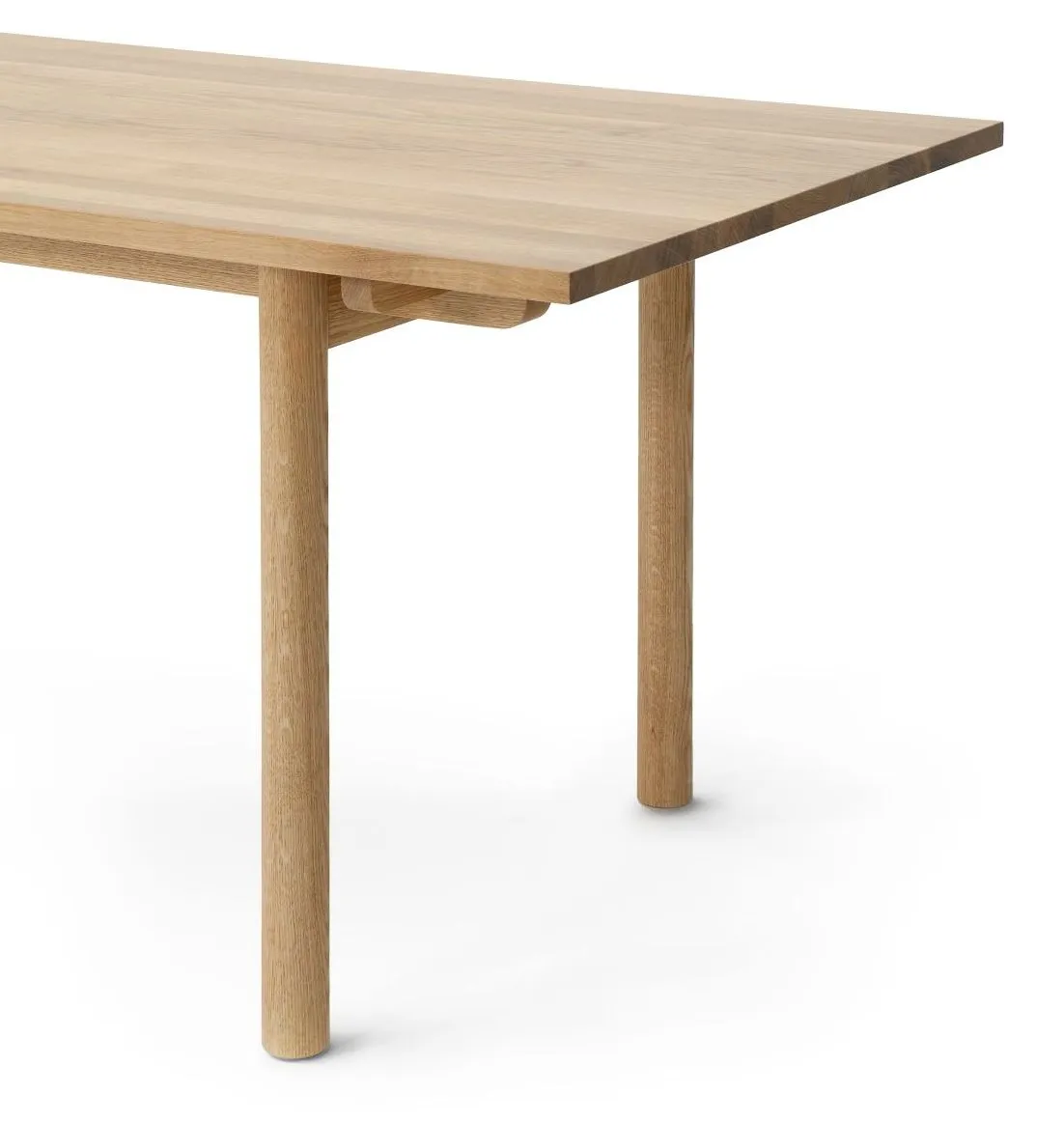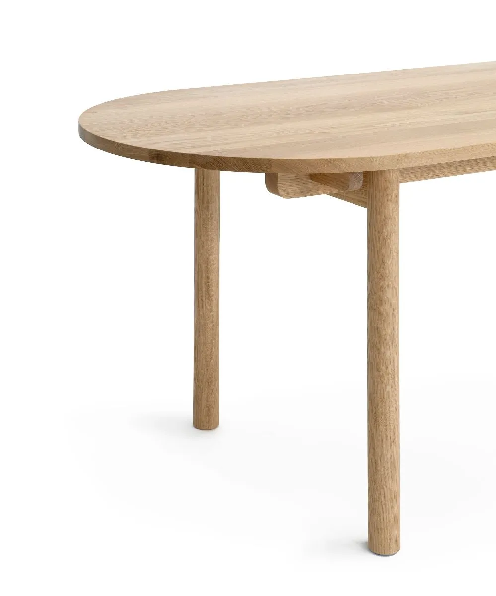 Basic is available in solid ash or oak, either in oval or rectangular shape. One can also combine the shapes by using tables with one oval and one rectangular end: this way it is possible to build a long banquet table, which is then again very easy to separate back into smaller units. By adding rectangular tables in between the oval end versions it is possible to build extremely long entities.