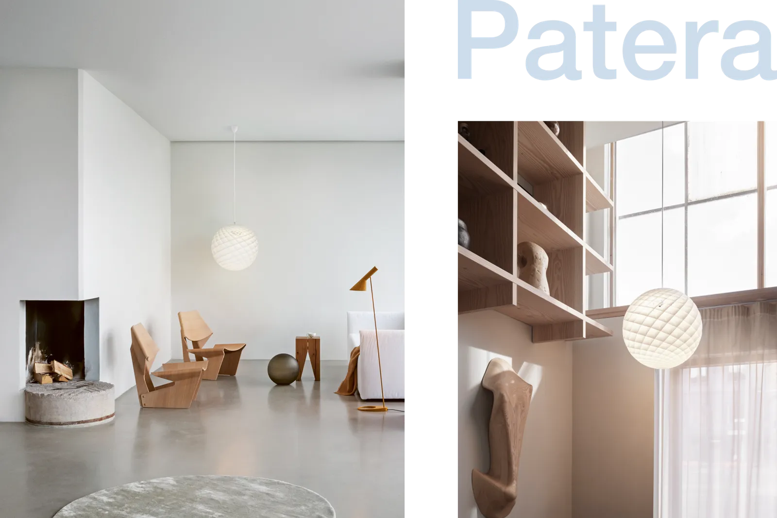 Patera Oval is an atmospheric pendant with a diameter of 50 centimetres, which will elevate any bedroom, hallway, or corridor, as well as conference rooms, hotel rooms and lobbies. It comes with a white textile cord and an E-socket, making it possible to choose the desired light colour and output. It is also available in an LED version, with the option of 2700 or 3000 Kelvin.