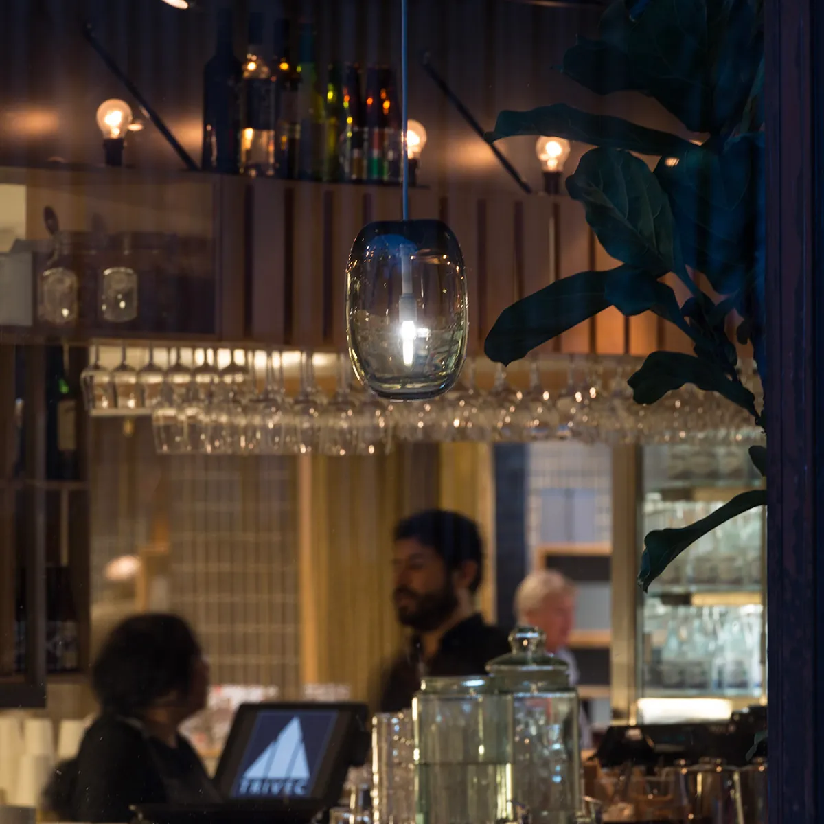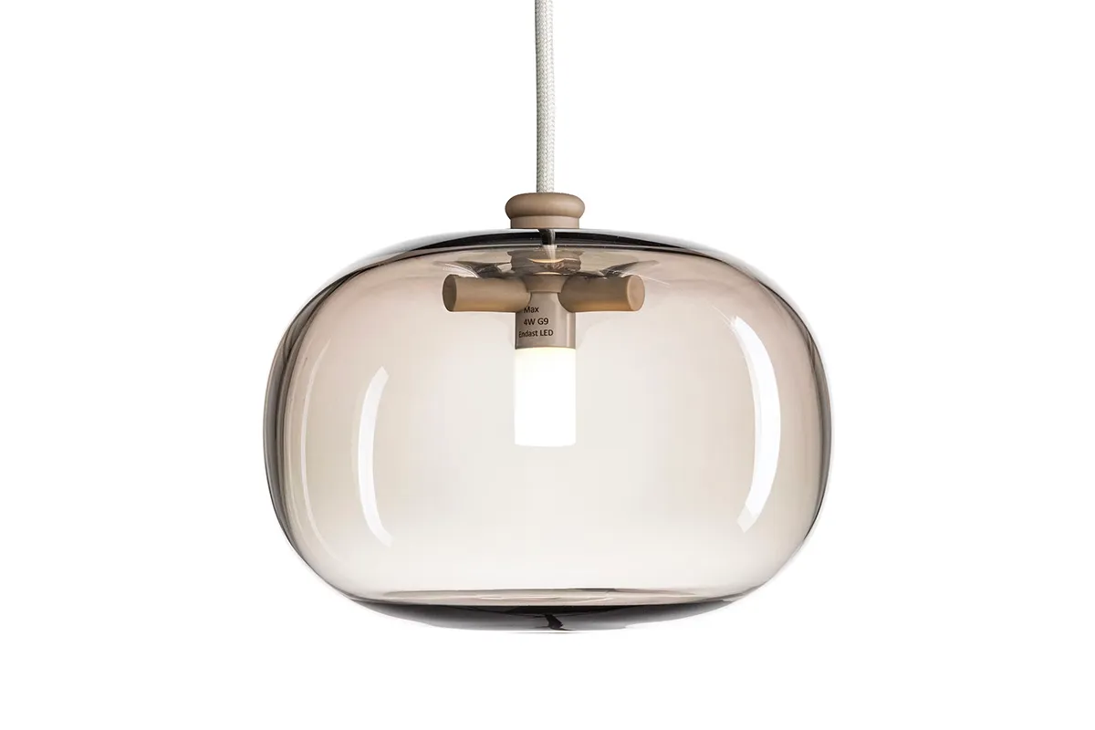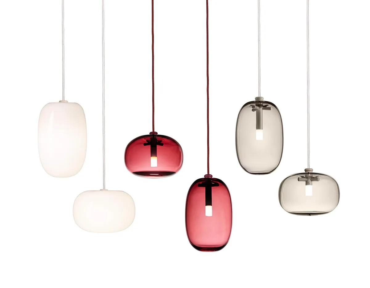 Pebble is a mouth-blown lamp that emits an atmospheric, glimmering, broad blanket of light suitable for hotel lobbies or home living rooms. It is designed by Joel Karlsson, who drew inspiration from the French designer Serge Mouille.