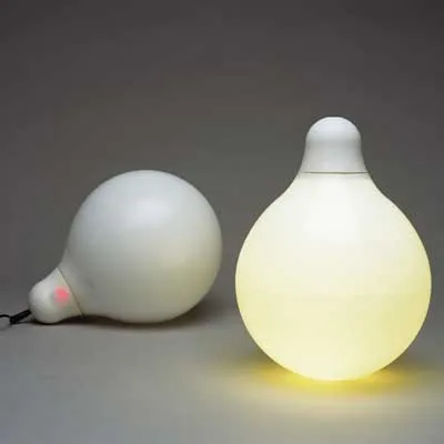 An opal portable lamp with round soft shapes that can used cordless anywhere, just as your mobile phone! Load is made of rotation moulded polyeten that feels nice and soft in your hand. Thanks to the combination of material and shape Load is also almost shook proof. The rechargeable battery gives 5 hours light. Description: H 315 x Ø 233 mm.