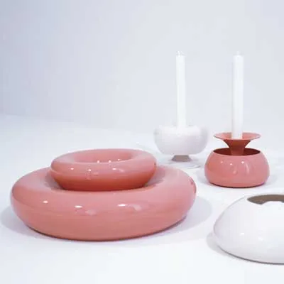A playful set of reversible ceramics in organic shapes. Bowl, ashtray and candlestick