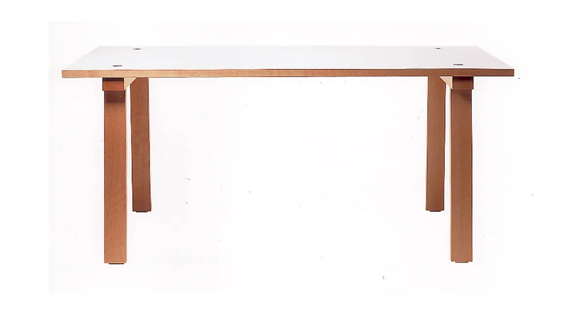 “bord ett” (table one) design Björn Bahri A table in birch, with a top supported by solid wooden trestles. The table top is executed as standard in laminated wood covered with turned birch veneer or white laminate, with a solid edge strip of birch. A modern trestle table with clearly displayed construction, clean and free from unnecessary details, suitable for the home as well as the workplace.