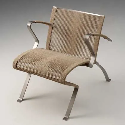 The Icelander Sigurdur Gustafsson continues this in the Skylark furniture series, where color, form, and construction are influenced by the Dutch De Stijl group, with Mondrian and Rietveld in mind. The Take Away lamp, and now the new models – armchair and stool – in stainless steel and rope braiding document Sigurdur Gustafsson as an innovative and fearless designer.