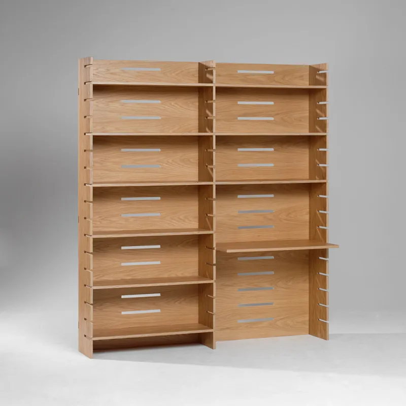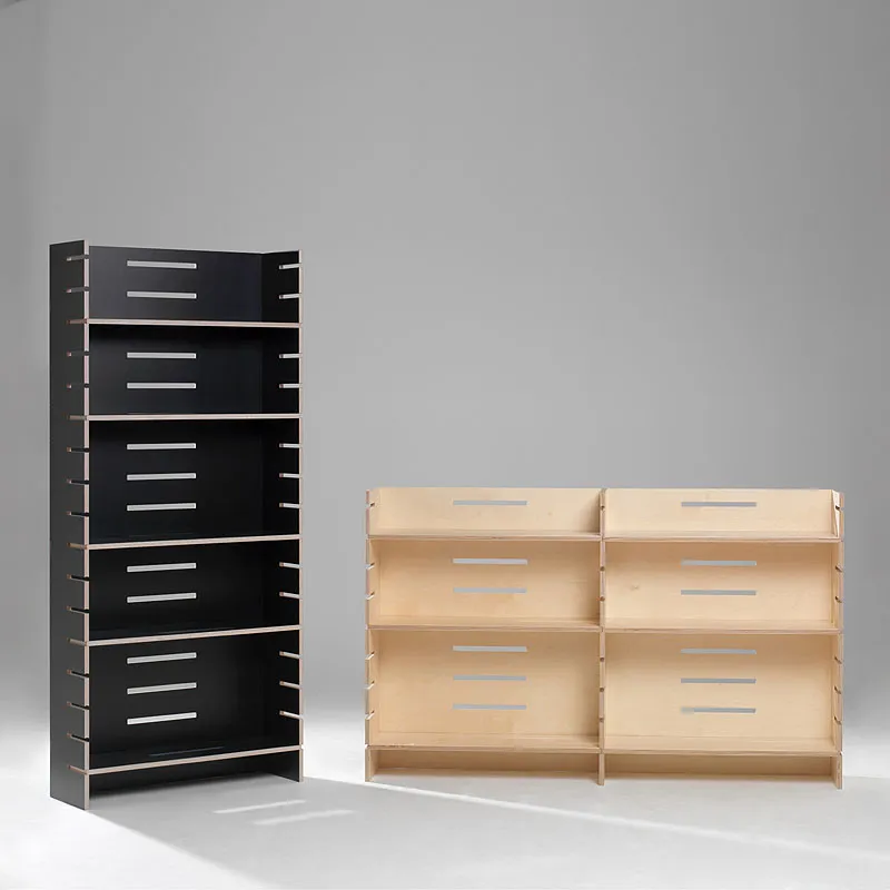 The task was to provide a set of shelves or a bookcase in multi-layered veneer to be assembled without the use of nails, screws or glue.