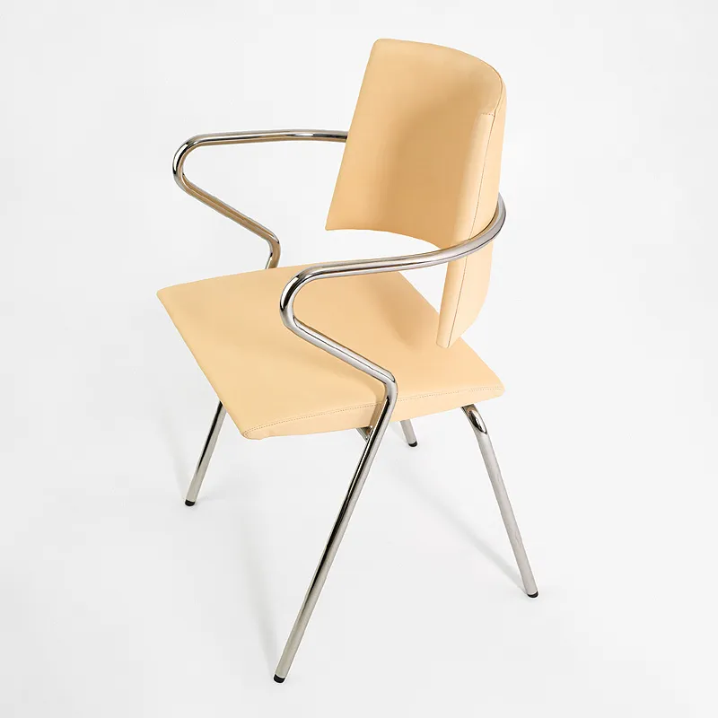 steelframe in crome or powderpaint. fabric or leather h 67, w 75, d 78 cm.