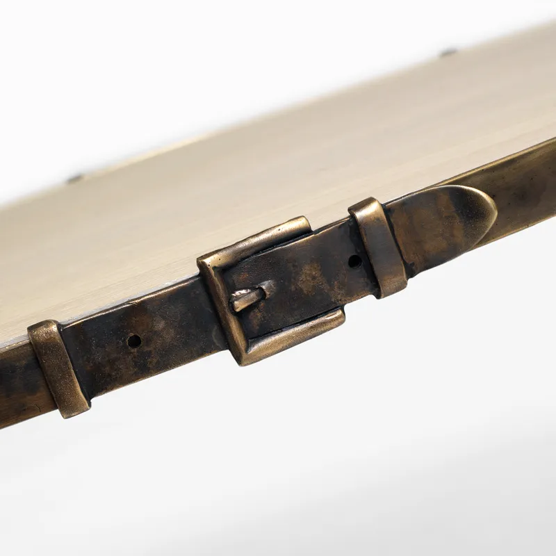 Patinerat stålsunderrede, sits i transparent polycarbonate.