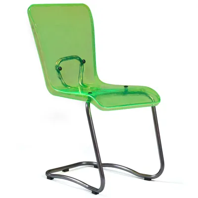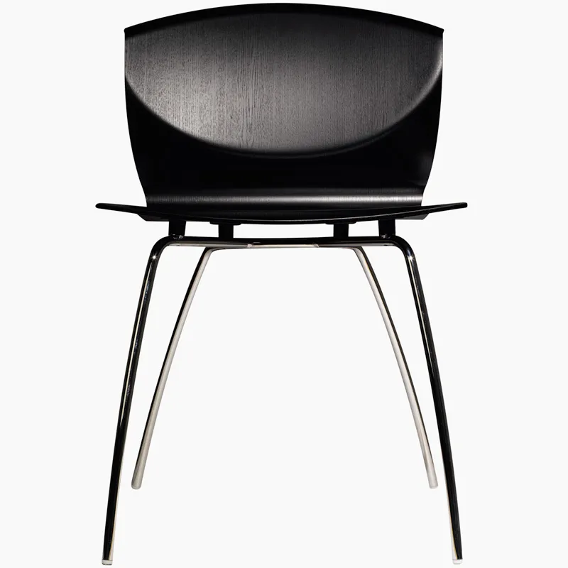 Cromed steel frame, compress moulded seat in ash.