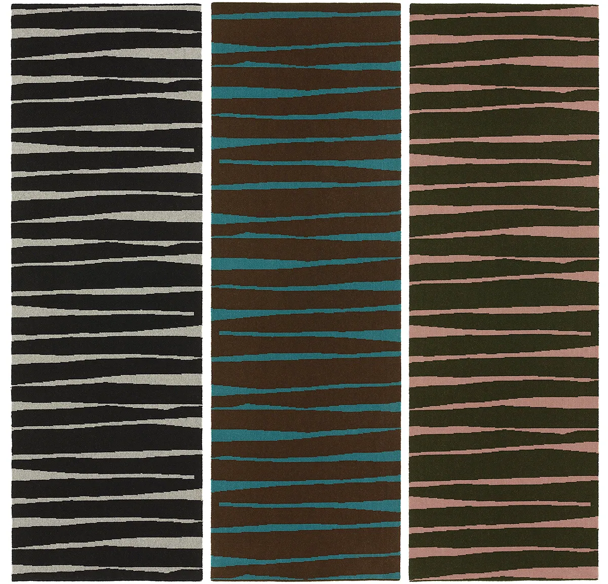 plowed field is the source of inspiration for this unusual irregular striped pattern, and the impression it creates