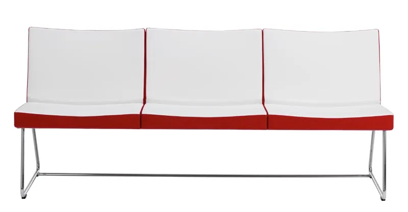 Material: Seat construction is plywood with injected expanded polyurethane foam and a pocket spring core for maximum comfort. Seating modules are mounted on an extruded aluminium beam. Optional arms in aluminium with rubber coating. Legs of steel tubing. Beam Sizes: Dimensions: 1 seat, 2 seats, 3 seats, 4 seats Height 81 cm Seat height 44 cm Width 63/69 cm Depth 67 cm.
