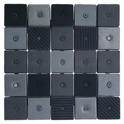 In a gluttony of nuances, patterns and grades from Fanny Aronsen’s collection of fabrics, along with unique, soutache, metal and plastic vintage buttons, I have created a series of seats that offer more to the beholder and user than just a place to rest. The results are two seats. Praline Noir 6×3 and Praline Noir 5×5, made of small cushions with various types and kinds of buttons, where each unique part forms a variegated whole which is brought together by the wide but thin legs”.