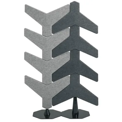 “Group of Trees” is our way of effecting change in public settings. Out with those square-shaped room dividers on squeaking wheels – in with organic designs and a concept that encourages interaction. The parts that lock into one another consist of a repeated moulded wing made of sound-absorbing