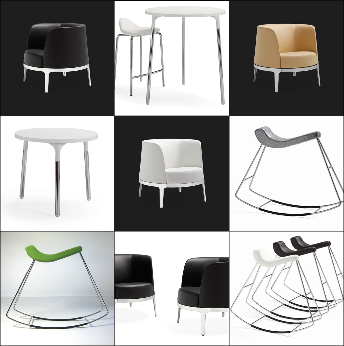 Limpan is intended for active sitting, thus fitting naturally into the Materia meeting concept. The design language is light and playful. The rocking movement activates the body and helps release tension. Furthermore, it engages both halves of the brain, thus stimulating creativity.