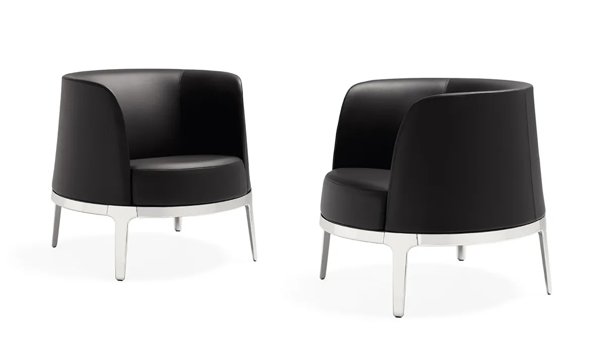 Industrial designer Carl Öjerstam offers a subtle surprise: an exquisite easy chair, firmly anchored on four legs, yet rotating 360°.