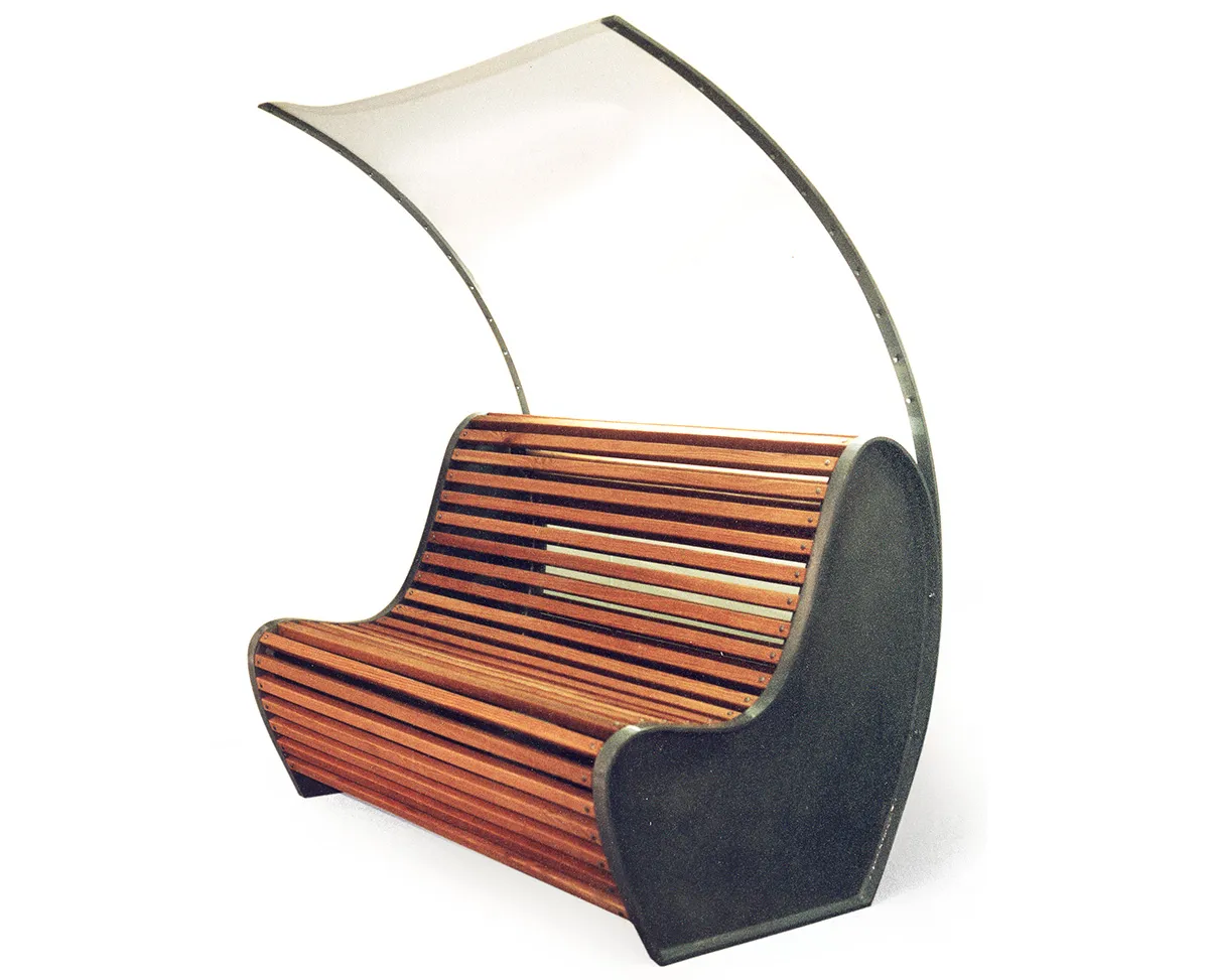 Pastiss backed bench Design: Gunilla Hedlund This playful bench is crafted from pieces of laser-cut …