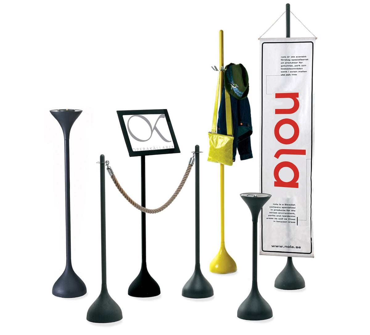 design Mårten Claesson, Eero Koivisto, Ola Rune. Line-Up is a waiting line barrier made by Mårten Claesson, Eero Kovisto and Ola Rune. Complementing the flag pole Stand-Up and the tray table Lift-Up, it can make temporary spaces or rooms within the room. With a foot in cast iron, Line-Up stands steady and can easily be tied together by a cord.