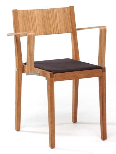 The stackable wood chair Axel is recognized by its simplicity and ease. Made in solid birch pine or oak, designer Mats Aldén has recently added arm rests. The chair features a linking device and is available both with and without upholstery.