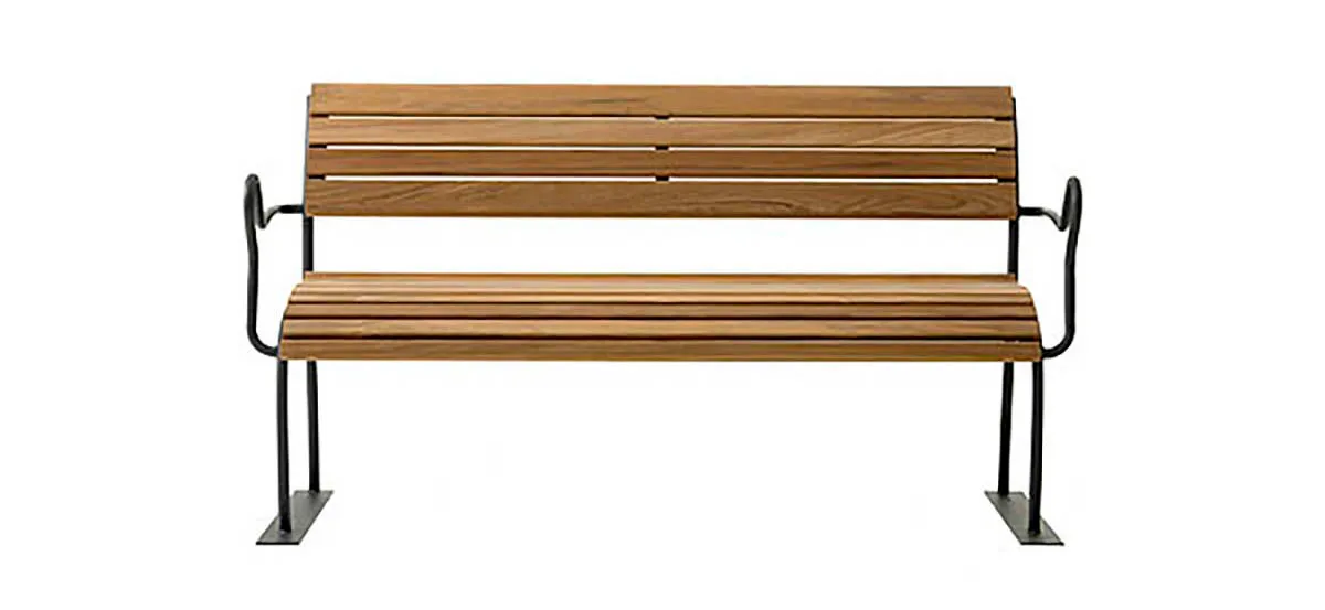 Kajen park bench Designed by Thomas Bernstrand Conventional wooden slats form the seat and backrest …
