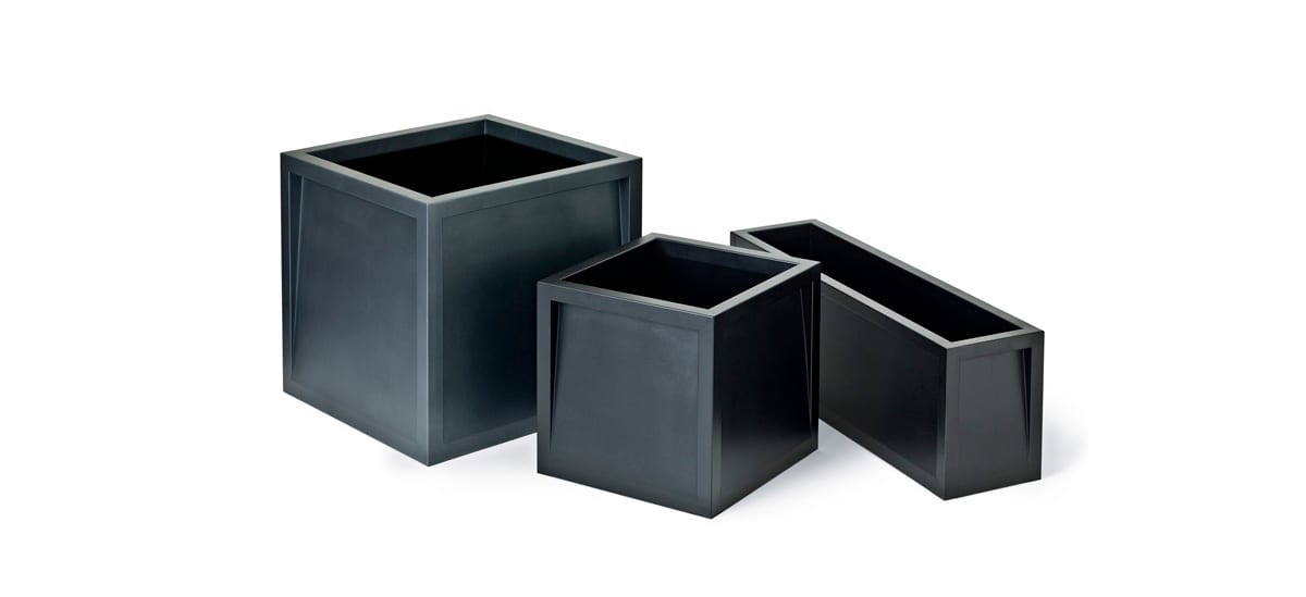 Few designers explore the theme of containment as artfully as the Stockholm-based design duo Broberg & Ridderstråle, whose latest products include cube and rectilinear planters. As their sides taper inwards and upwards from the base, they meet the upper rim at an inner point, giving it the appearance of extending outward. By cleverly combining the handles and the rim in a single expression, Broberg & Ridderstråle created a subtle tromp l’oeil effect that may trick the eye, but not the hand.