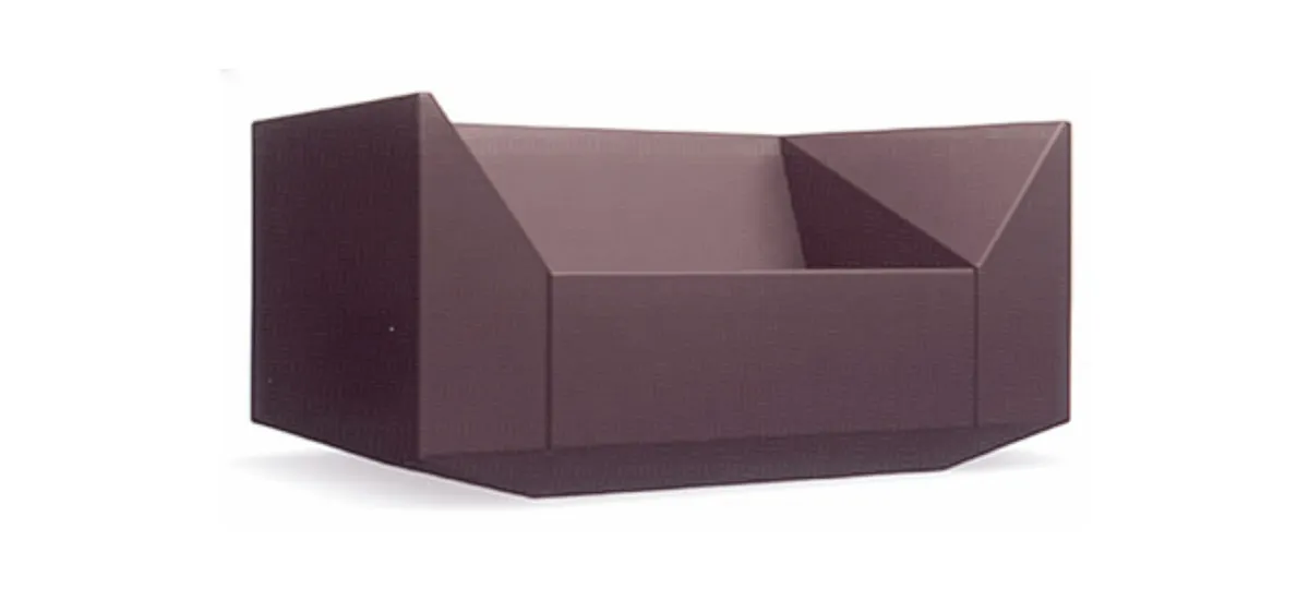 “I’m both interested and amused by stealth aesthetics, the shape generated by bringing planes together and allowing the computer to transform curves into facets,” says Eero Koivisto. “I wanted to see what happened if you combined a cubistic volume with a more faceted inside. A sofa designed