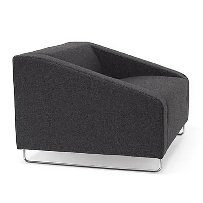 SLIDE is based on the same cubic shape as the other two systems, but it rests on thin runners. The ends are cut diagonally to give the sofa a sense of openness. SLIDE is very harmonious in shape because the back and armrests flow in an unbroken line which is elegantly finished off by the narrow runners.
