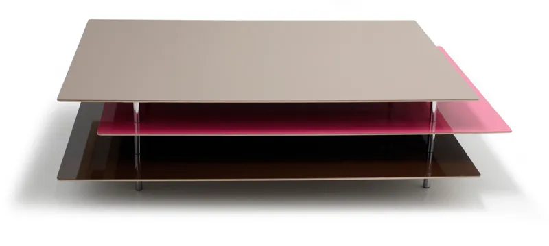 WINDOW is a table with a tabletop in white lacquered MDF with coloured glass and …