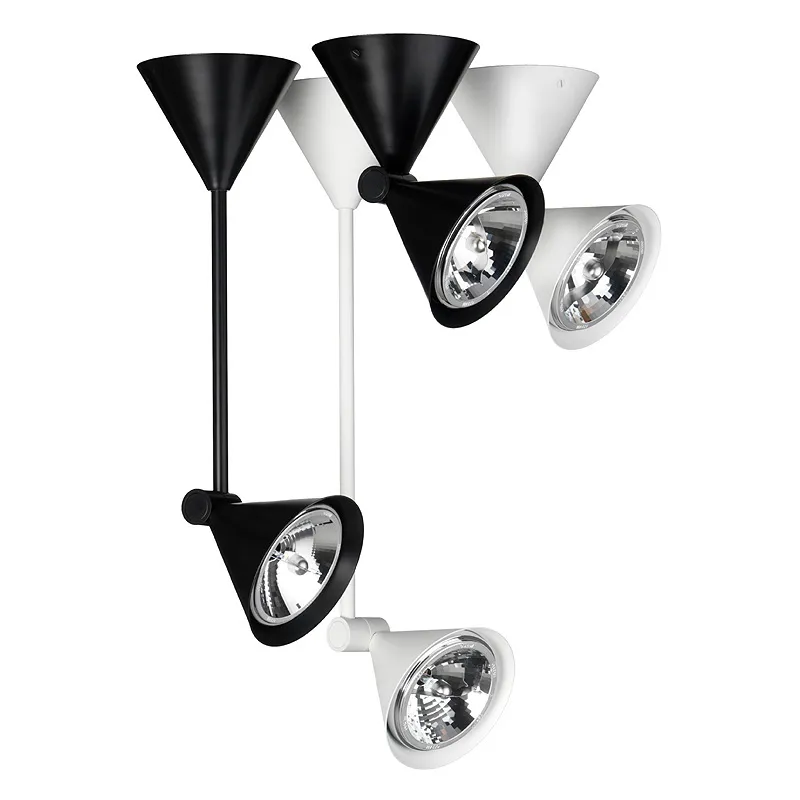 Two cone-shaped details and an adjustable joint gives Spotlight a very special design. Spotlight is produced in two versions, directly to wall/ceiling and with a pendulum device. Thanks to an effective light source with good characters, Spotlight will be useful for environments that need adjustable light. Light source: 50W 12V Halogen