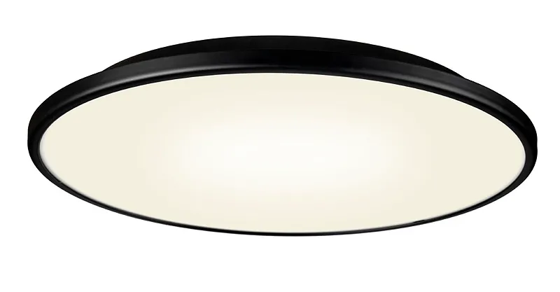 Disc is produced in white or black enamelled metal. It is easy to change the light source by turning the diffuser and ring. No visible screws or fastening clamps. The light source has a life span of 15 000 hours. The height is very low, under 50 mm. The diameter is 405 mm. Light source: 22W T5 circular