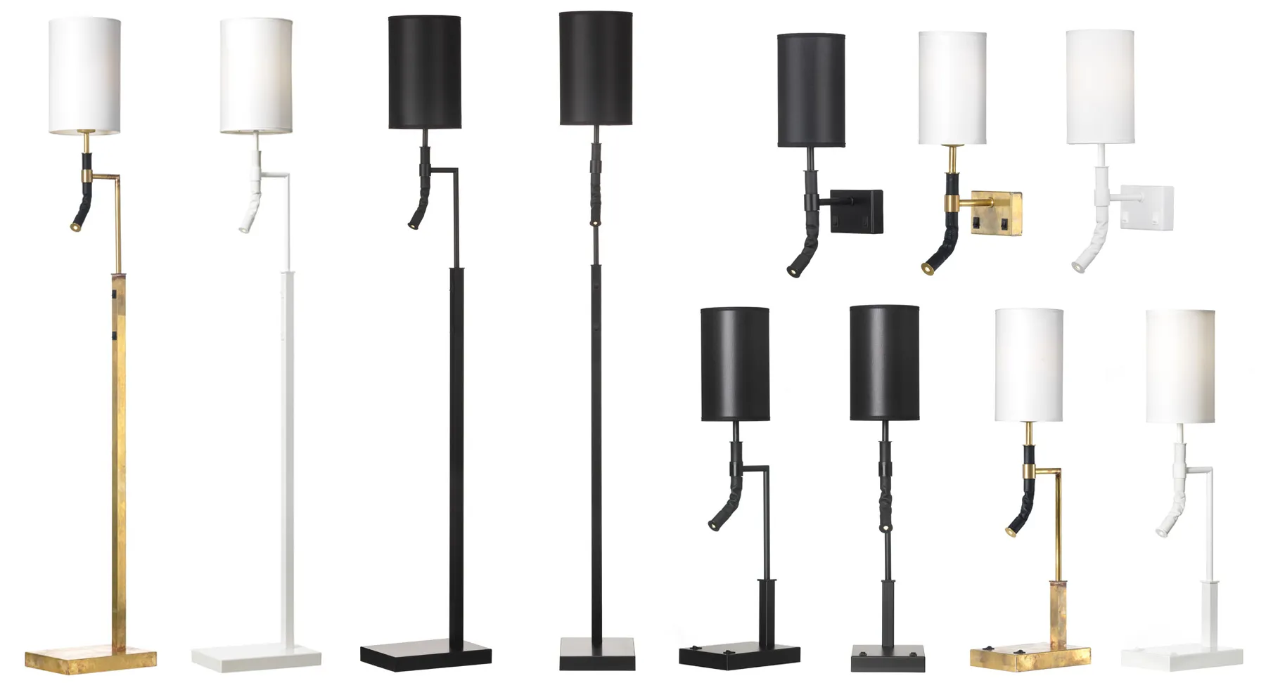Electronics should work as silent servants, gliding in and out as you need them. This lighting family looks like figures who maybe stand behind a club armchair and stretches a reading lamp for you just when you need one. A perfect Butler!