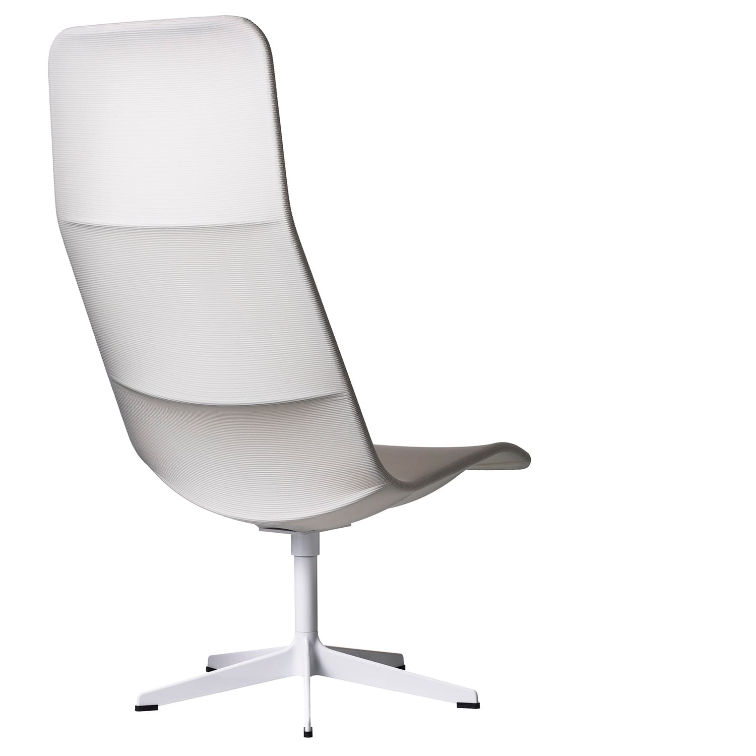 A delicate expression and named after kite-surfers’ kites. The prize-winning and much acclaimed Broberg & Ridderstråle’s new armchair has an ingenious construction in its simple design: a black or light-grey net, stretched over a steel frame. The basic design can be upgraded with armrests, neck cushion, upholstered seat and back. The chair represents a theme for this year – our 5-star swivel base in recycled, die-cast aluminium in polished clear-, white or black lacquer finish.