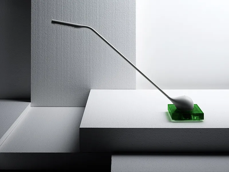 A task lamp is a highly technical object. Rotation mechanism, arm reach, counter balance, degree of efficiency, safety… It must all be there. How to use it must be self-explanatory to anyone. Hiding all the mechanics and electronics left a no-nonsense design. This lamp almost designed itself. Arm, elbow, head. And light.