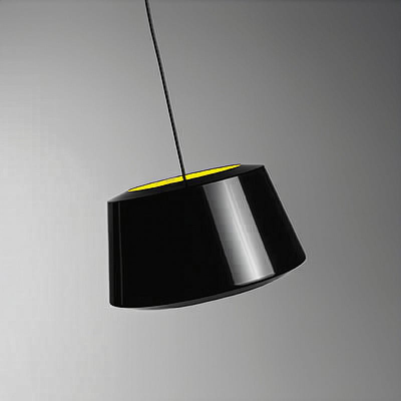 CAN works like a “can of light”. The boundary between dark and light is emphasised by enclosing the light in a container. CAN is made of lacquered metal in white or black. The inside is lacquered lime green. CAN is available as a pendant, floor or table fitting.