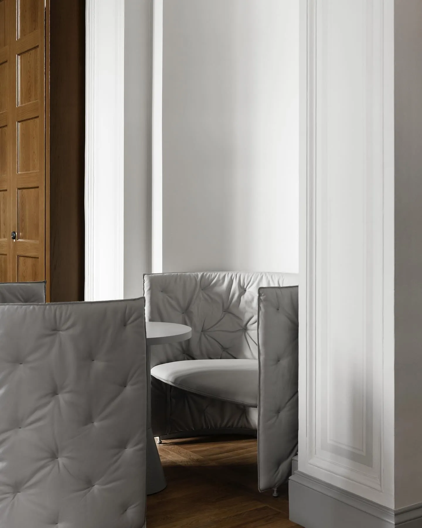 Designed with TAF Studio. Niche, originally designed for the restaurant at the Swedish National Museum, has distinctive tufting on the inside and out.