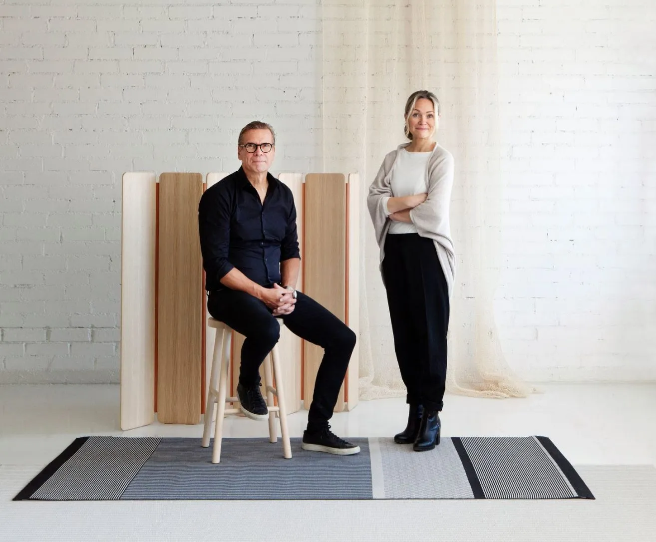 Mikko Puotila and Johanna Vuorio with Woodnotes and Nikari products.