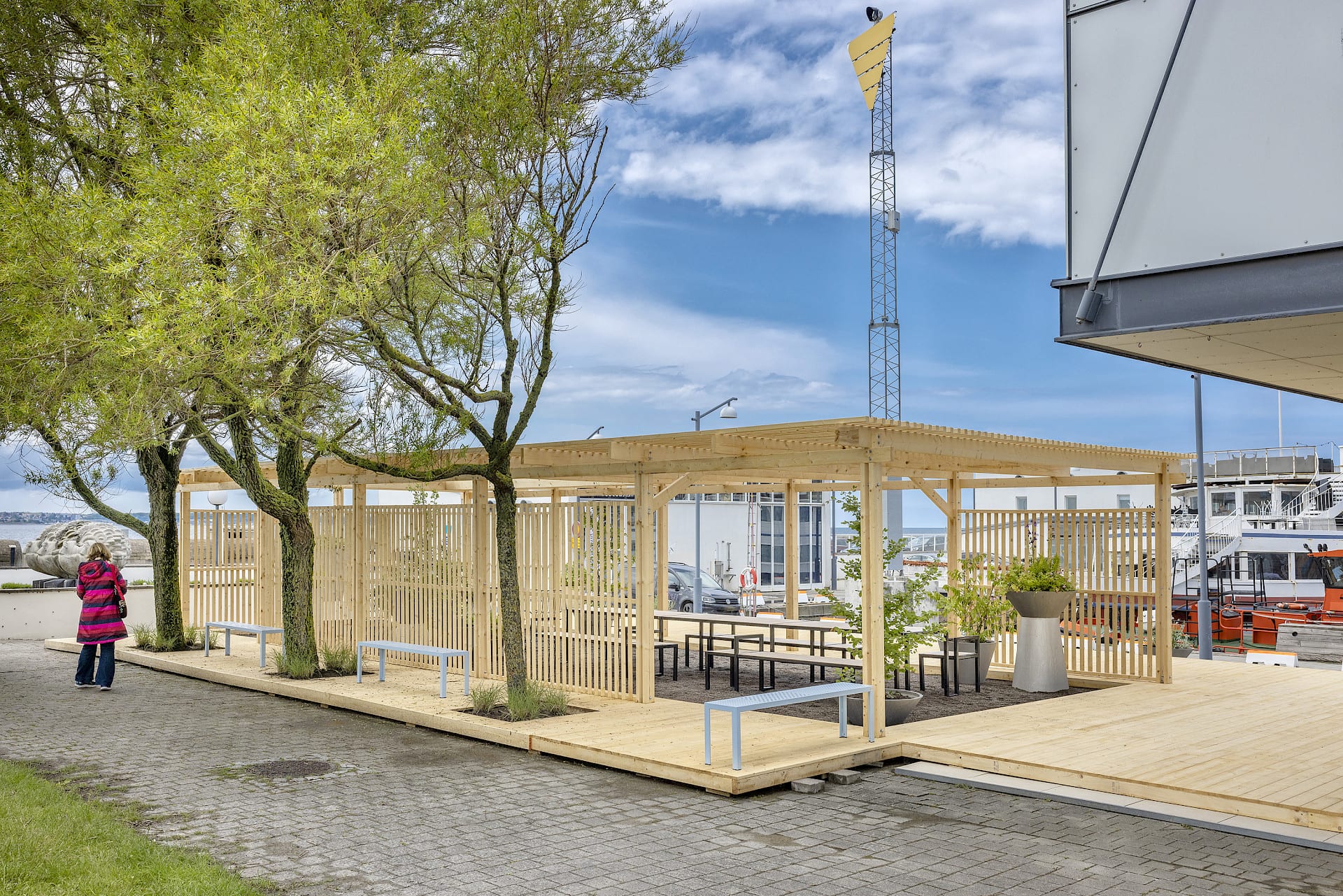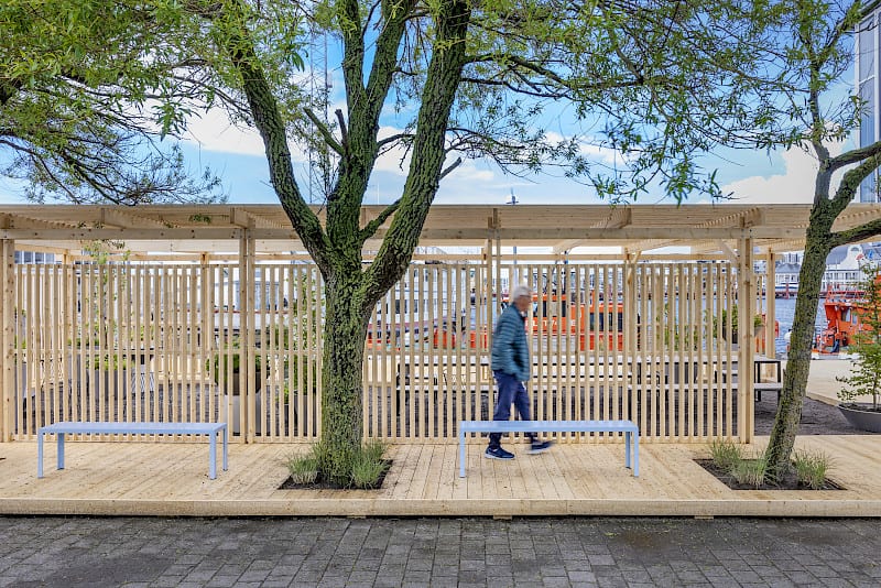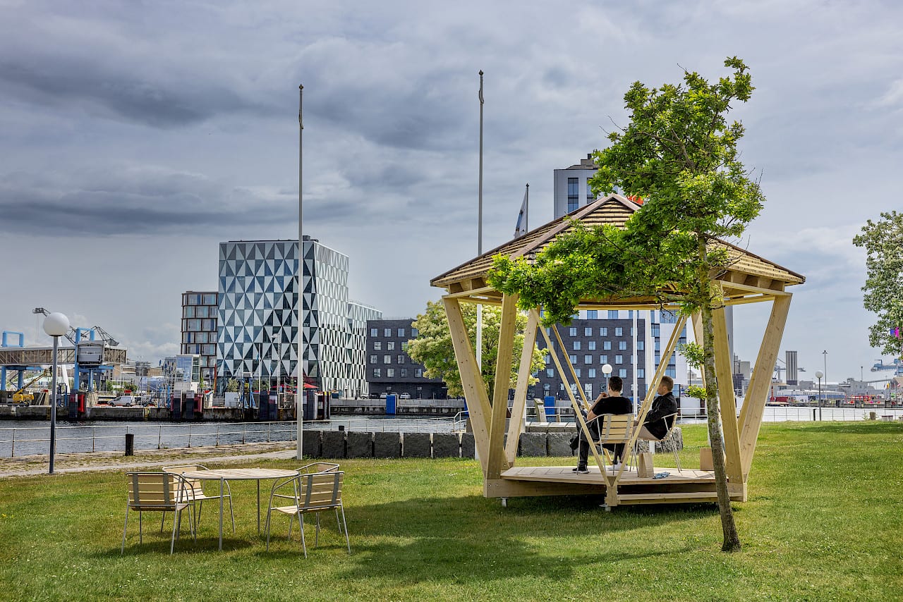 The Hexagon H22 pavilion designed by the Swedish architectural firm known as In Praise of Shadows has been included in Nola’s permanent collection. In collaboration with Svenskt Trä (the association for Swedish wood exports), the pavilion was installed at Parapeten, where it provides space for meetings and talks. “We can see that the character of cities is slowly shifting from functional infrastructures to social spaces where residents and visitors can live and thrive. More urban places for leisure and relaxation are needed, especially in cities with such beautiful sea views as Helsingborg has,” says Henrik Edlund, CEO of Nola.